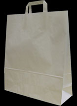 Самые простые пакеты с вклеенными ручками производятся машинным способом из коричневого или беленого крафта, но для рекламных целей можно сделать заказ на ручное изготовление пакетов из мелованной бумаги с ламинированием, из дорогой дизайнерской крашеной в массе, или из переплетных материалов, которые не рвутся на сгибах. Печать на таких пакетах может быть офсетной либо (для окрашенных в массе бумаг) шелкографской; для отделки используются тиснение и выборочное лакирование.