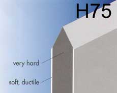Линейки H75 представляют собой усиленный вариант линеек TOP и также имеют одинаково твердую сердцевину и режущую кромку (51 по Роквеллу). Подходят для вырубки резины, пробки, войлока и бальзовой древесины. Имеют высокую тиражестойкость.