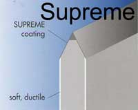 Supreme. Вид линеек с напылением тонкой пленки на режущую кромку. Напыляемый материал заполняет все неровности, поры и трещины на режущей кромке делая ее очень гладкой. В итоге высечка происходит без образования пыли, уменьшается давление высечного пресса до 50%, снижение износа режущей кромки из-за снижения силы трения, увеличение тиражестойкости штанцформы.