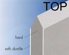 Режущие линейки TOP состоят из одинаково твердой сердцевины и режущей кромки (45 по Роквеллу). Такие линейки легко обрабатываются благодаря высокой гибкости. Подходят для вырубки большинства видов полиграфической продукции из картона, гофрокартона при производстве этикеток, открыток, визиток и т.д.