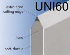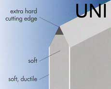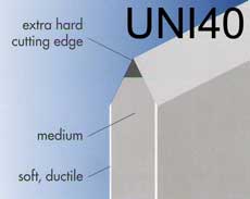 Твердость линеек      Согласно классификации фирмы Bohler по твердости режущие линейки подразделяются на следующие виды: TOP, H75, Universal, Universal 40, Universal 60 и Universal 75. Каждый из видов имеет свои преимущества, и отличаются друг от друга твердостью сердцевины и режущей кромки.